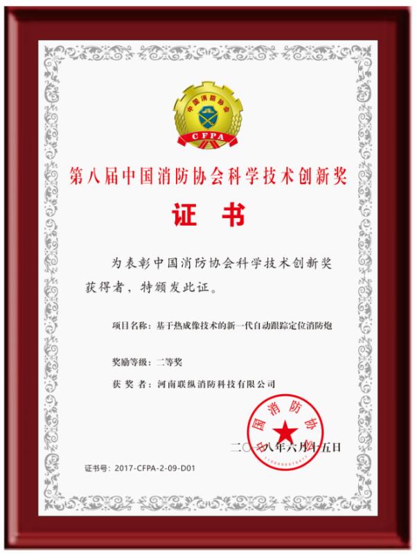 河南聯(lián)縱消防科技有限公司位于鄭州市高新區(qū)電子電器產(chǎn)業(yè)園,擁有專家團(tuán)隊(duì)和標(biāo)準(zhǔn)化工業(yè)廠房和實(shí)驗(yàn)場,是一家以大空間智能消防水炮為主導(dǎo)的集科研、開發(fā)、生產(chǎn)、銷售、服務(wù)于一體的高科技消防設(shè)備制造企業(yè)。 公司以“極致產(chǎn)品安天下”為宗旨,針對市場上普通消防水炮精準(zhǔn)度差、易誤噴、不能實(shí)時(shí)追蹤動態(tài)火源、適用場所受限等缺陷,歷時(shí)6年,成功研發(fā)出了第II代自動跟蹤定位射流滅火裝置系列產(chǎn)品。公司已通過了IS09001:208、IS014001:2004、OHSAS18001:2007、GB/T29490-2013等體系認(rèn)證,獲得專利授權(quán)三十多項(xiàng),取得國家級高新技術(shù)企業(yè)、消防行業(yè)誠信示范單位、消防科技創(chuàng)新企業(yè)、第八屆中國消防協(xié)會科學(xué)技術(shù)創(chuàng)新獎,產(chǎn)品通過國家消防裝備質(zhì)量監(jiān)督檢驗(yàn)中心檢驗(yàn),并獲得了公安部消防產(chǎn)品合格評定中心頒發(fā)的消防產(chǎn)品認(rèn)證證書。 第II代自動跟蹤定位射流滅火裝置采用熱成像+捷聯(lián)制導(dǎo)技術(shù),集自動報(bào)警、動火追蹤、自動滅火、視頻監(jiān)控四位一體,具有可靠性高、精準(zhǔn)度好、性能穩(wěn)定、安裝操作方便、智能化程度高、應(yīng)用環(huán)境廣泛等特點(diǎn)。公司產(chǎn)品自上市以來,已經(jīng)有數(shù)萬臺產(chǎn)品被安裝在了數(shù)千個(gè)工程項(xiàng)目中,先后參加了幾十次國內(nèi)外消防展,贏得了各界人士的一直好評,被央視《我愛發(fā)明》欄目發(fā)現(xiàn)后,央視編導(dǎo)組對產(chǎn)品性能進(jìn)行了數(shù)十天的實(shí)驗(yàn)和拍攝,先后在以下節(jié)目播出: CCTV-10《我愛發(fā)明》之“烈火哨兵”、CCTV-10《實(shí)驗(yàn)現(xiàn)場》之“滅火試驗(yàn)”、CCTV發(fā)現(xiàn)之旅《品質(zhì)》之“智慧消防 守護(hù)一生”、 CCTV-17新改版《我愛發(fā)明》之“智能水炮”...